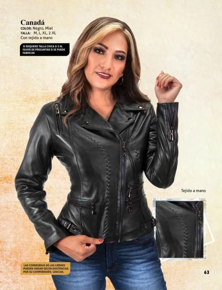 Cálida, resistente y con estilo atemporal. La chamarra Canadá en piel está diseñada para mujeres que buscan comodidad sin perder elegancia en su día a día.