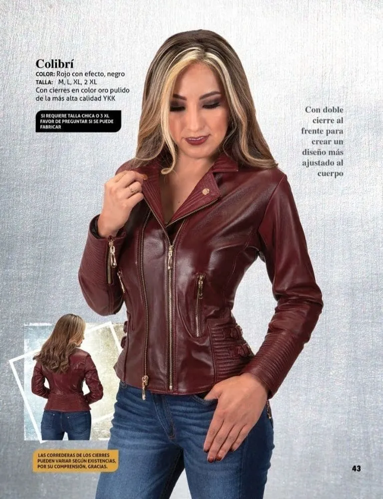 Ligera, vibrante y con un estilo lleno de vida. La chamarra Colibrí en piel está diseñada para mujeres que buscan destacar con un look dinámico y lleno de personalidad.